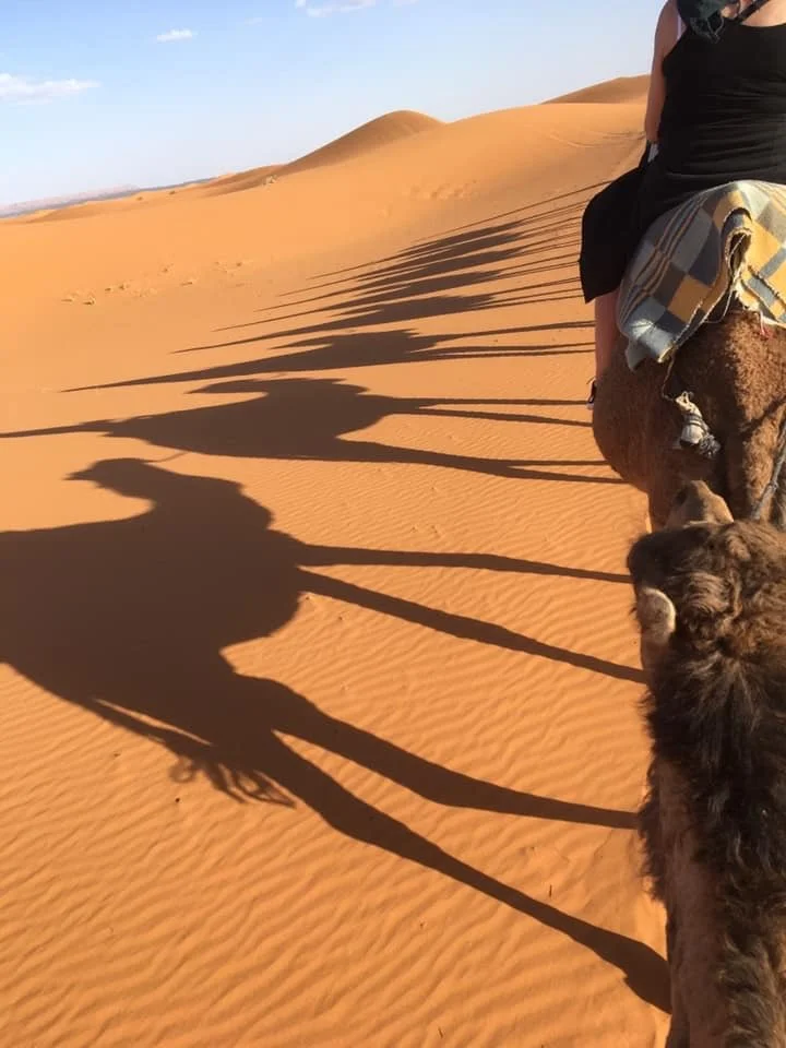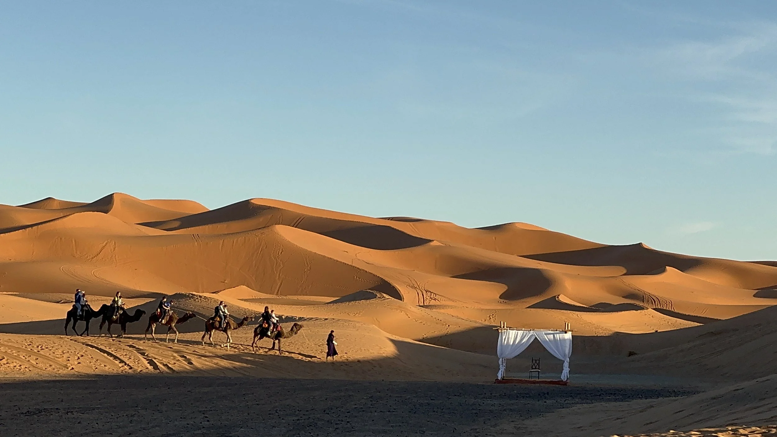 I Sahara får du oppleve stillheten, uendeligheten, og eventyret. Vi rir på dromedarer, som gir en rolig og autentisk måte å oppleve de enorme sanddynene på. For mer adrenalin og spenning kan du suse nedover sanddynene på et sandboard, eller cruise på sanddynene og utforske det varierte ørkenlandskapet på en ATV. Et av høydepunktene i Sahara er en offroad-tur til utkanten av ørkenen, der vi drikker te med en nomadeffamilie og danser til lokal Gnawa musikk.