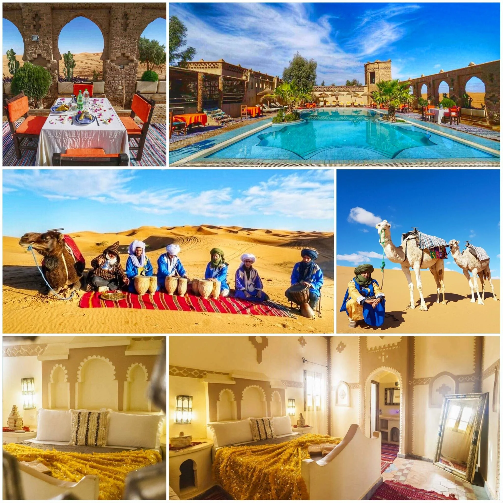 I Sahara glamper vi i luksustelt med komfortable senger, varme dyner og privat bad. Vi bor også på et ørkenhotell med basseng, perfekt for å slappe av etter opplevelsesrike dager. Hvert sted er nøye valgt for å gi deg både velvære og ekte opplevelser.