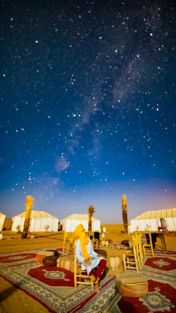 Når solen går ned, forvandles ørkenen til en magisk scene: bålet tennes, trommene kaller, og stjernehimmelen åpner seg. Kveldene byr på både berbermusikk, livsglede og refleksjon, og minner du aldri vil glemme. En reise til Sahara er ikke bare fylt med eventyr, men også sjansen til å finne din indre nomade i et av verdens mest imponerende ørkenlandskap.